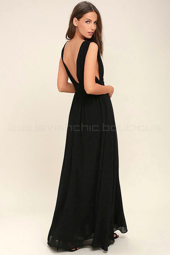 Lulus Exclusive! You'll be goddess-like for the entire evening in the Heavenly Hues Black Maxi Dress! Georgette fabric drapes alongside a V-neck and back, and lays across a banded waist. Full maxi skirt has a sexy side slit. Hidden back zipper with clasp.
