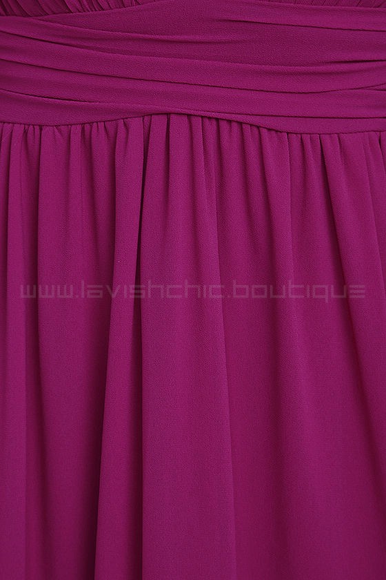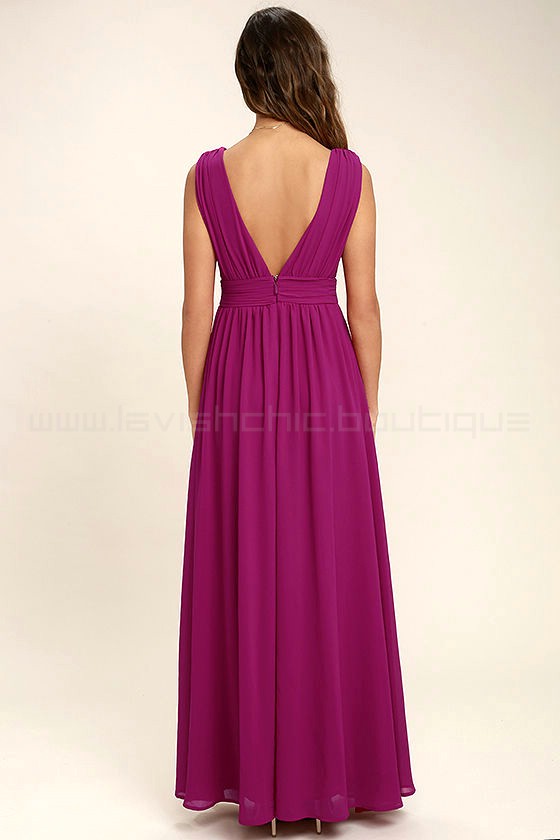 Lulus Exclusive! You'll be goddess-like for the entire evening in the Heavenly Hues Magenta Maxi Dress! Georgette fabric drapes alongside a V-neck and back, and lays across a banded waist. Full maxi skirt has a sexy side slit. Hidden back zipper with clasp.