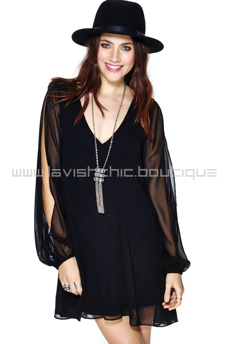 - Long sheer sleeves with slits along the tops