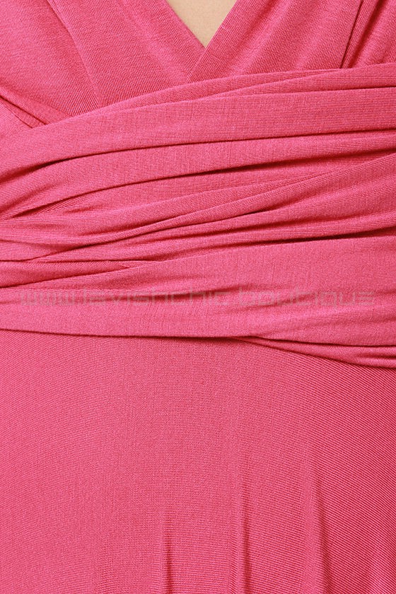 Versatility at its finest, the Tricks of the Trade Rose Pink Maxi Dress knows a trick or two... or four! Two, 76" long lengths of fabric sprout from an elastic waistband and wrap into a multitude of bodice styles including halter, one-shoulder, cross-front, strapless, and more. Stretchy, jersey knit hugs your curves as you discover new ways to play with this fascinating frock. Full, maxi-length skirt has a raw hemline. Unlined.