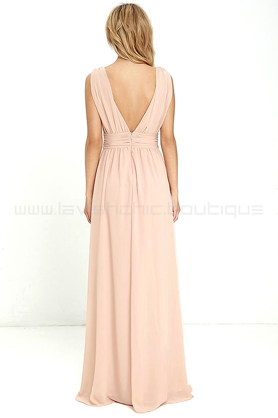 Lulus Exclusive! You'll be goddess-like for the entire evening in the Heavenly Hues Blush Maxi Dress! Georgette fabric drapes alongside a V-neck and back, and lays across a banded waist. Full maxi skirt has a sexy side slit. Hidden back zipper with clasp.