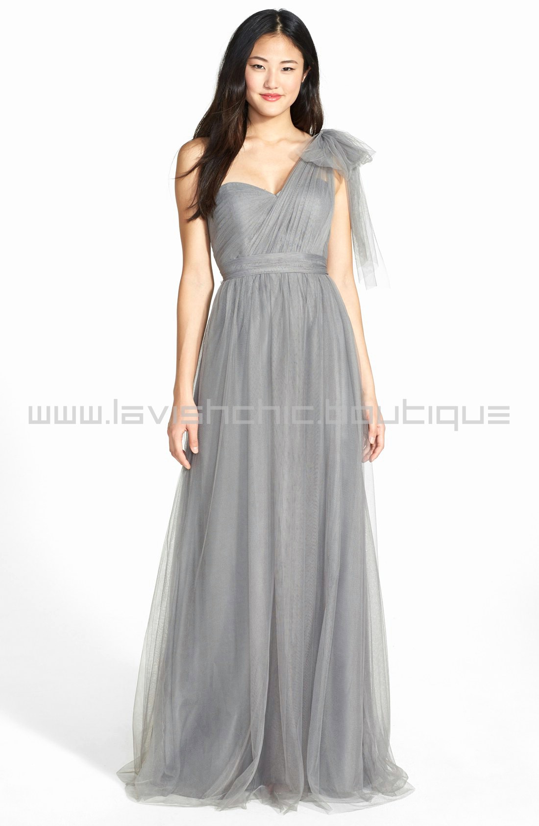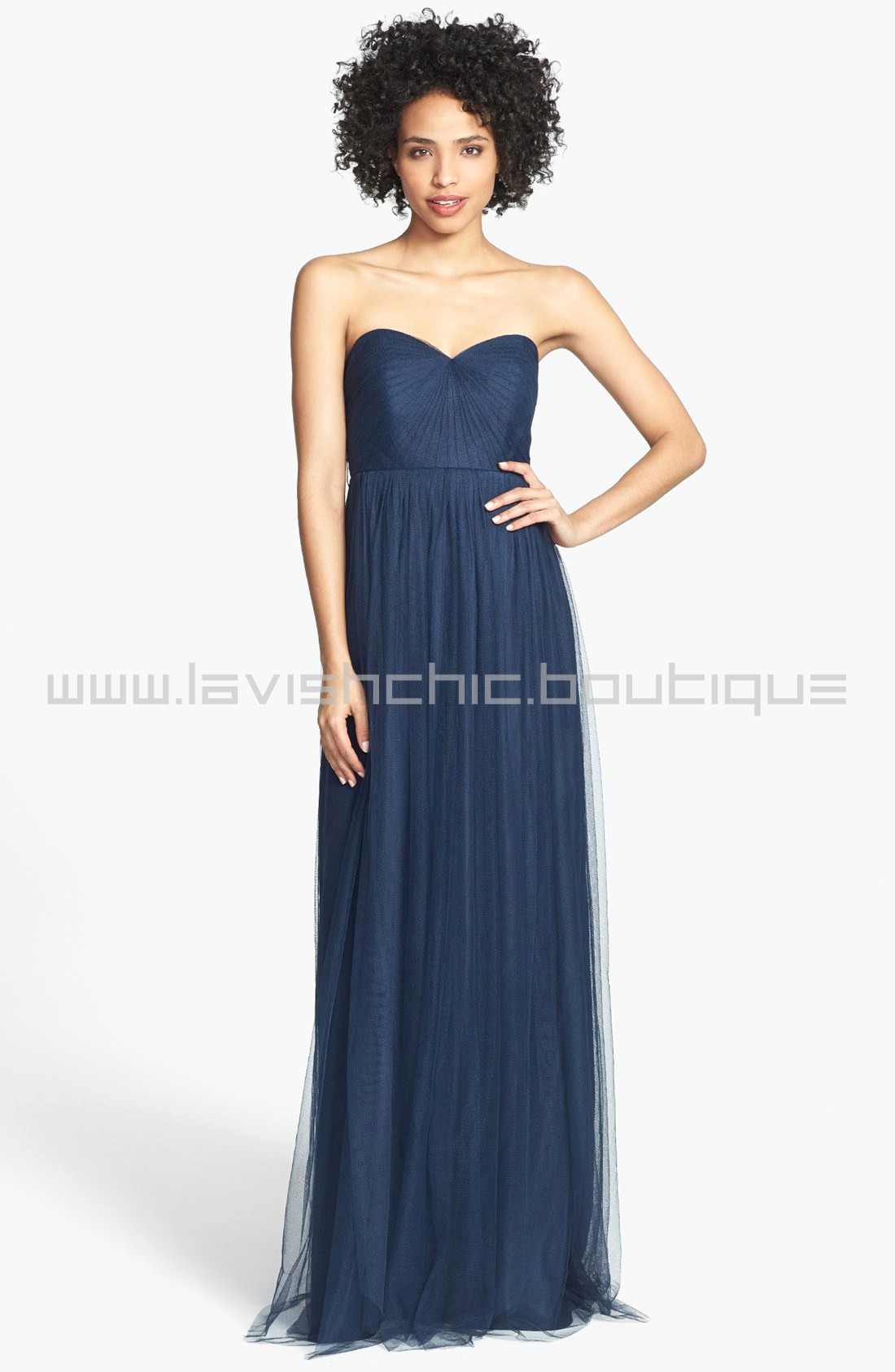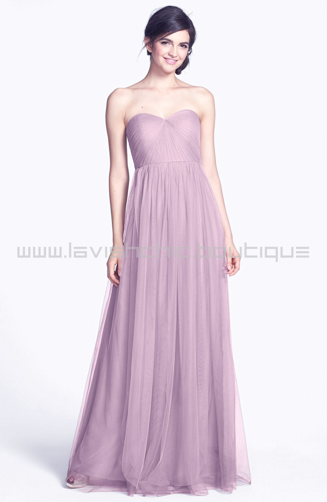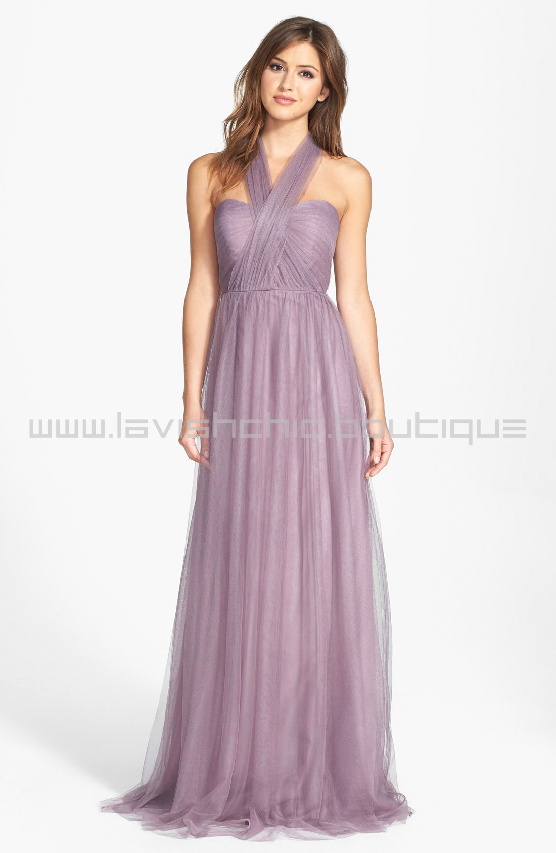 Ethereal tulle overlays a wispy strapless gown designed with long panels that can be artfully wrapped and tied over the bodice to create more elegant looks. Crafted of the softest, lightest tulle, this bias-cut, convertible dress is incredibly versatile – ties that blend into its long skirt can be styled 15+ ways so each bridesmaid's personality can shine. This unique feature of the Annabelle also ups the wear-again factor to "definitely" since each look creates a completely new gown. Your bridesmaids will thank you, trust us.