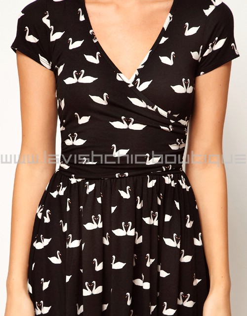 Skater Dress With Ballet Wrap In Swan Print Skater Dress With Ballet Wrap In Swan Print Skater Dress With Ballet Wrap In Swan Print